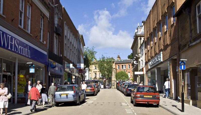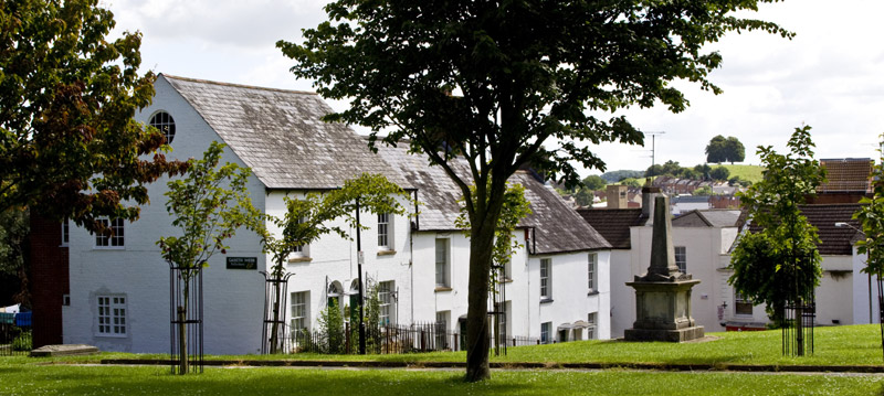 The old St Johns Baptist School. Now shops. Click on the old double doors to the right to see the name engraving.