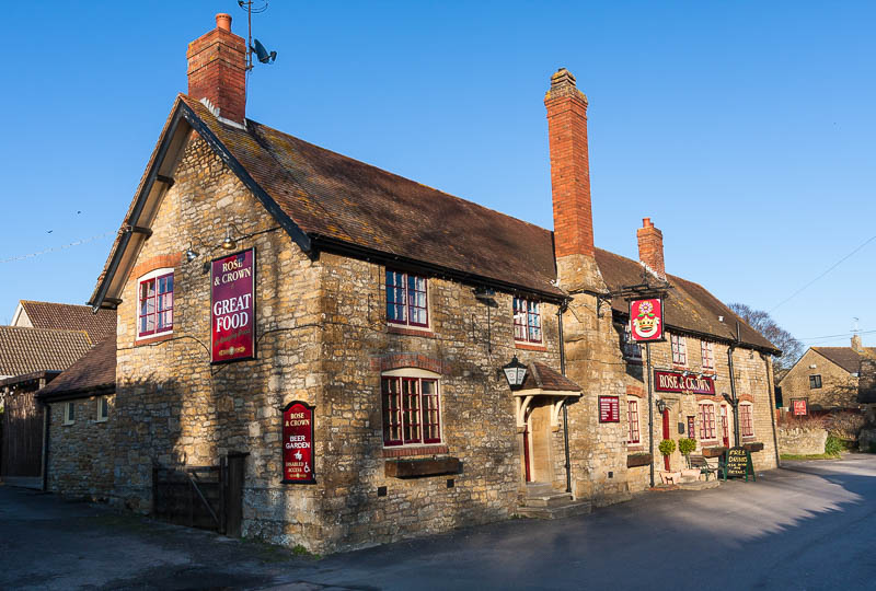 October 2006 - The village pub, the Rose and Crown. Click on the pub door to follow a link to more information about old photographs etc within the pub.